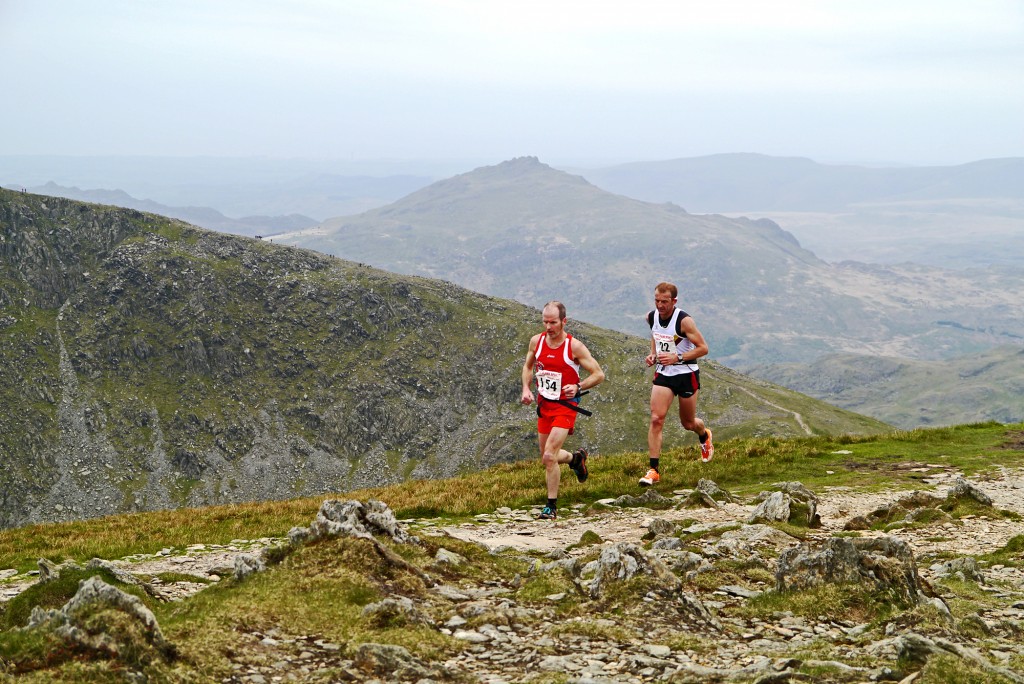 A good turnout from Pudsey, and we set off on the Miners’ Track going carefully over the cattle grid to avoid being trampled in the rush. On the long slog up to Wetherlam, Rob Hope was setting the early pace. Lots of small route choices meant the field split up quickly, trying to gain a small advantage at every turn. In my case this meant doing lots of hard graft to pass runners on a hard climb, only to see them somehow emerge ahead again from an unseen trod. Still, you can’t get dispirited when Coniston and all the surrounding fells are laid out in front of you on a day like that. Even the locals were surprised when they could see from the top of the Old Man.