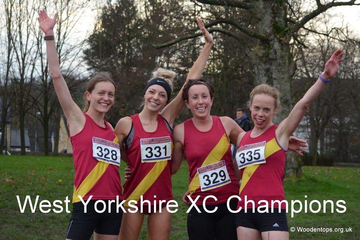 Race 4 Guiseley – Belinda poorly, Sian raced the day before and didn’t fancy the double, Suzy recovering from illness, Claire and me very tired (plus I hate running at Nunroyd Park), but on the positive side all we had to do was stay within 22 points of Holmfirth. I tried some potty mouthed motivation on the start line to drum up some fighting spirit – what a shame it didn’t work on me. I’d made a point of saying we had to beat the mustards, but I could not for the life of me catch the 3 just in front for the entire race. When the Woodentops Paparazzi arrived we didn’t dare celebrate for fear of embarrassing ourselves if we hadn’t won. Another win for Alex meant she took the Senior Ladies title, Sian secured Silver in the U20 Ladies and Claire was just outside the medals in 4th.