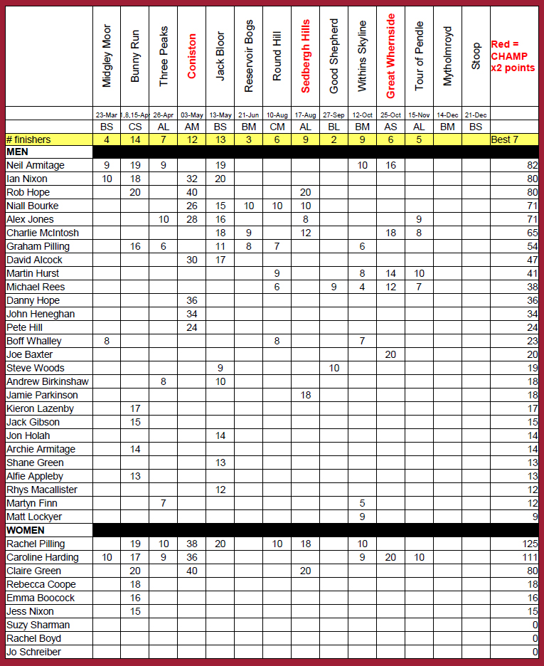 Mytholmroyd on Saturday, Stoop the following Saturday. The women’s looks like a head-2-head between Rachel and Caroline, whilst in the men’s there’s still a good number of people who can take the win. Will Rob add to his British title this year (he normally has a good showing at The Stoop)? Or will Neil hold out to be crowned club champion?