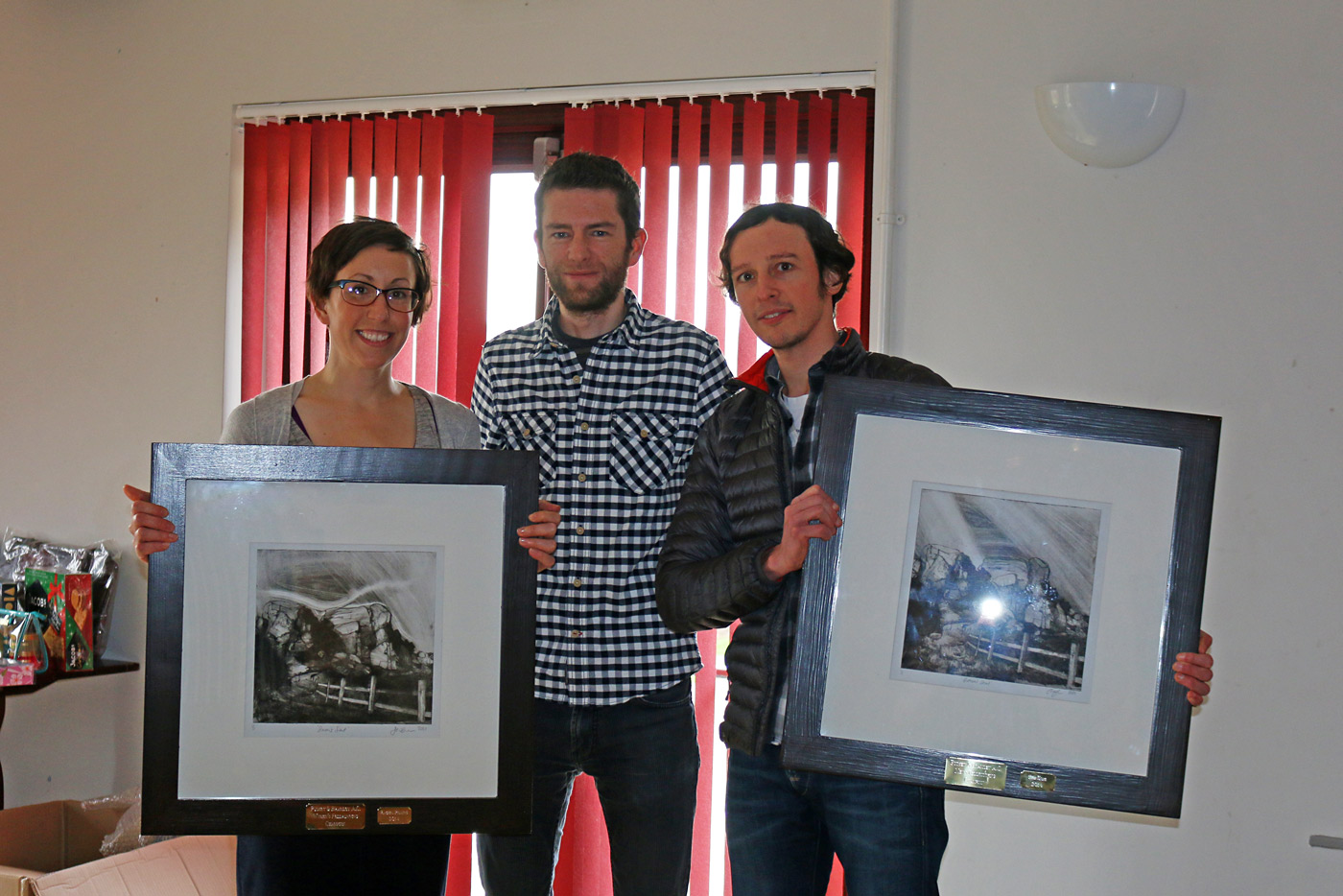 I then presented Rachel and Joe with the 2015 Senior Fell Champs trophies. These are aquatint prints of Simon’s Seat, donated by club artist Shane Green in 2014. Each year’s winner gets their name added to the frame and keeps the trophy for a year.
