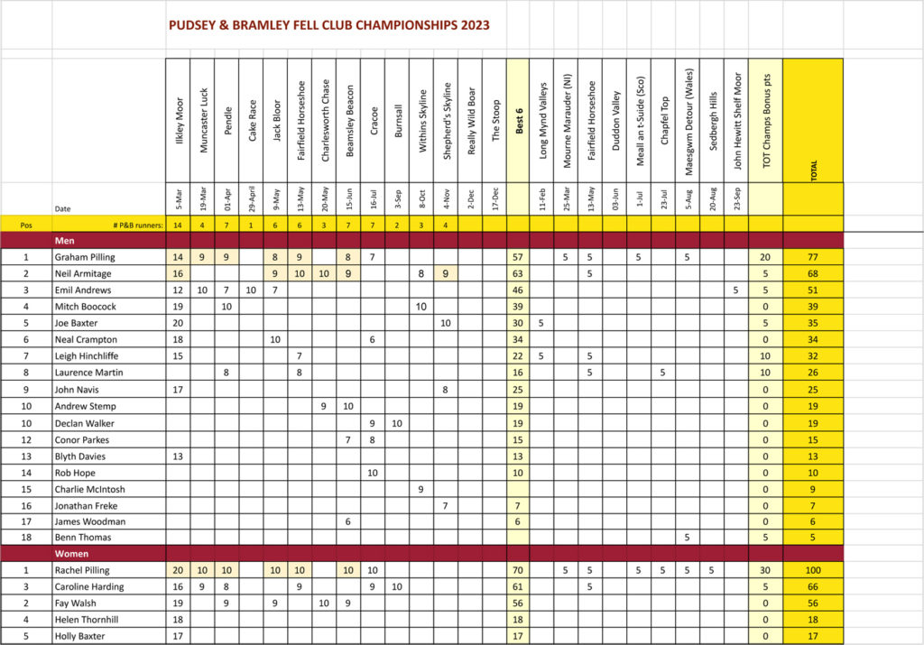 - Only runners entering races as Pudsey & Bramley AC (or variations of) will be included.